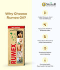This Ayurvedic joint pain relief oil combines natural ingredients, including extracts from the Rumex plant, to provide targeted relief from joint pain, stiffness, and swelling. Whether you're dealing with rheumatoid arthritis or osteoarthritis, Rumex Oil is your go-to Ayurvedic remedy. This joint pain oil is Ayurvedic and penetrates deeply into the skin, soothing discomfort and enhancing mobility. Embrace the natural, effective relief offered by Rumex Oil and experience freedom from joint pain.